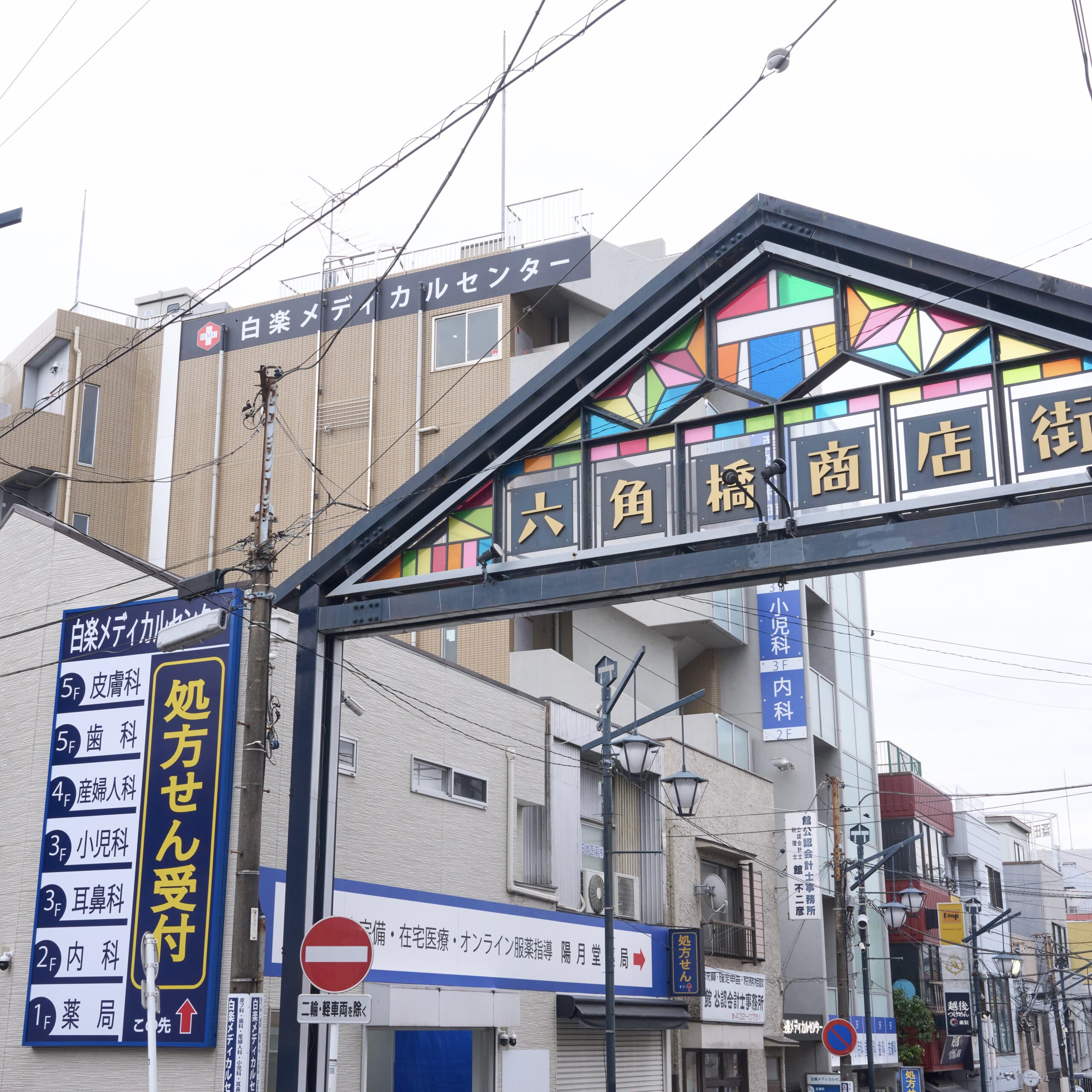 東急東横線・白楽駅西口から徒歩1分、白楽メディカルセンターです。内科・耳鼻咽喉科・小児科・産婦人科・皮膚科・歯科を備え、家族みんなが安心して通える場所を目指しています。